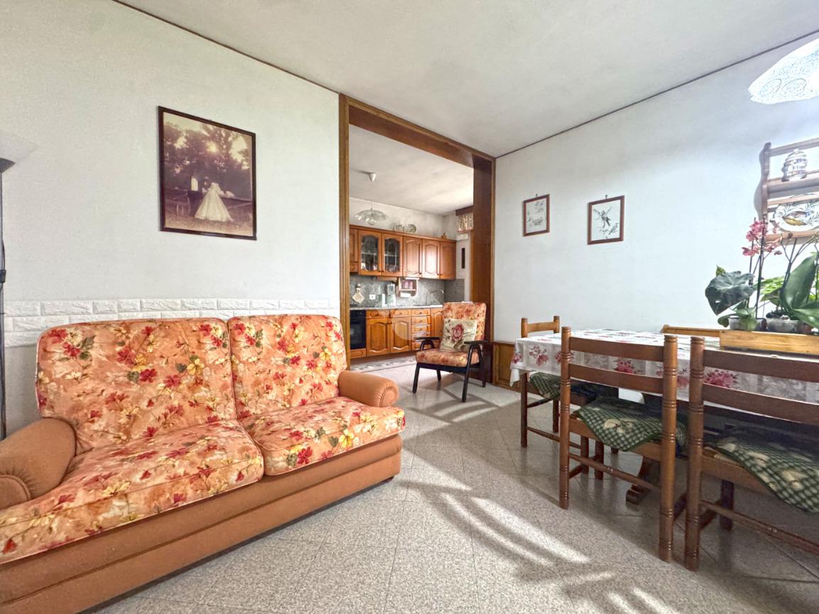 L’immobile apre nella zona giorno caratterizzata dalla cucina con sala da pranzo e soggiorno di buone dimensioni separato;